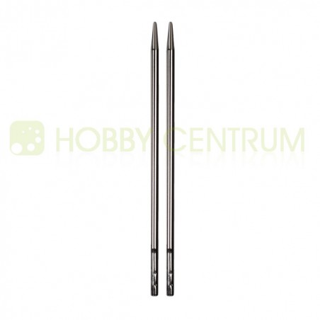 Druty metalowe niemieckiej firmy ADDI. Druty dobrze leżą w dłoni, mają doskonale wyprofilowany szpic o zaokrąglonej końcówce. Rozmiar: 5 Rys. 1. Druty należy składać suchymi dłońmi, żeby nie ślizgały się po częściach.Rys. 2. Zbliżyć drut i żyłkę, tak aby pokazane na rys. znaki leżały naprzeciw siebie.Rys. 3.Wcisnąć żyłkę w drut na 2 mm głębokości, za pierwszym razem trzeba użyć nieco siły.Rys. 4. Podczas wciskania lekko obrócić żyłkę w prawo o ok. 1 mm, tak aby wgłębienie na drucie zaskoczyło w rowek.Aby rozłączyć, należy wcisnąć żyłkę w drut i przekręcić w lewo.Łączenie żyłek: za pomocą złącza można połączyć 2 żyłki. Końce żyłek należy wprowadzić od strony prawej i lewej w złącze, umocować jak przy drucie. W ten sposób można dowolnie przedłużyć żyłkę roboczą lub przesunąć na osobną żyłkę odłożoną część robótki, tak by dalej pracować tą samą parą drutów.